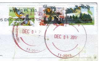 being disproportionate in size, the cancellations kinda overshadow the stamps and this is the thing that kinda got me confused - when I checked Glenn's blog, it said that he was already back from his cruise at the end of November, but the cancellation here says 04 December, so who knows what has happened.