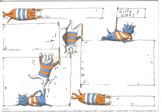 The card is an Edward Gorey's illustration that is part of the Cats & Dogs boxed postcard set.