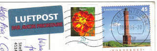 This card arrived from Steffi who attached two stamps - a lighthouse one from the set of 2 issued in 2009 and one definitive from the flowers' set issued in 2005.