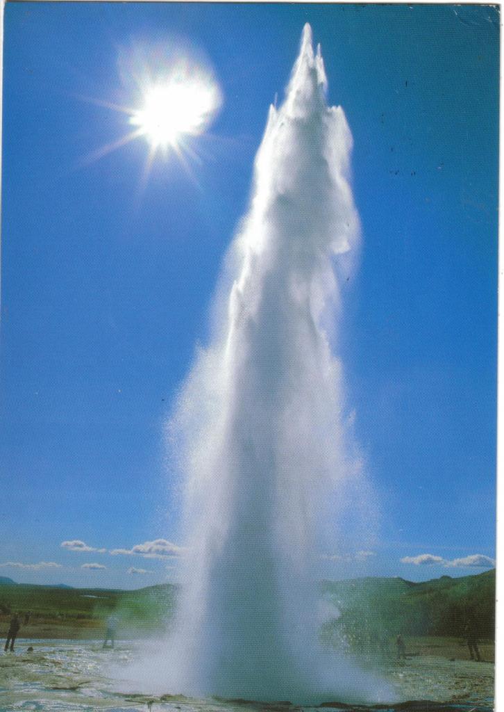 This is Strokkur - the junior geyser that erupts approximately every 5-6 minutes. The area surrounding Strokkur is rich with many smaller bubbling hot springs as well as the great Geyser. Geothermal activity in the area has increased since an earthquake shook the south of Iceland in the summer of 2000.